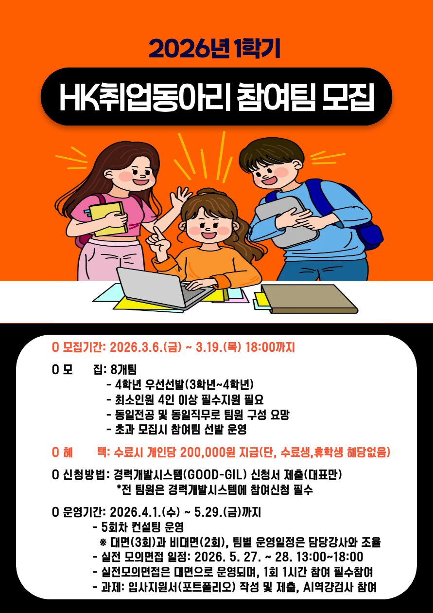 [진로/취업] 2026학년 1학기 취업동아리 참여팀 모집