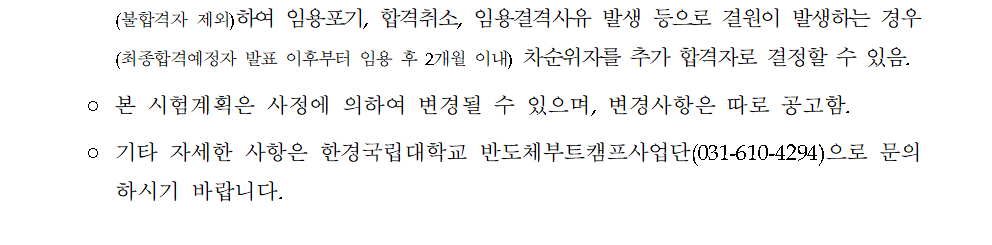 fnctId=bbs,fnctNo=350 단축 url 글번호 90165 [채용공고] 한경국립대학교 산학협력단 반도체 부트캠프사업단 계약직원 신규 채용 작성일 2025.11.13 수정일 2025.11.13 작성자 산학협력단 조회수 852 첨부파일 반도체 부트캠프사업단 기간제계약직 직원 신규 채용 공고문.hwp